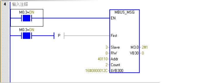 MUS_CTRL和MB_CTRL2具有相同的作用和参数。如果一个CPU有两个主站的情况下MBUS_CTRL用于第一个ModbusRTU 主站。MB_CTRL2用于第二个ModbusRTU 主站。相应地,MBUS_MSG和MBUS_CTRL一同用于第一个ModbusRTU 主站。MB_MSG2和MB_CTRL2一同用于第二个ModbusRTU 主站。