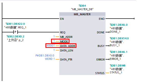 这种情况你要读取的设备目标地址与程序中红框位置的地址一致。原因是设备MODBUS地址与PLC MODBUS地址起始地址一致,后续所有地址一一对应。