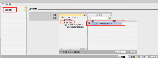 在接下来的“组态-基本参数”选择Ident 设备、及通信接口,点击 确认选择。